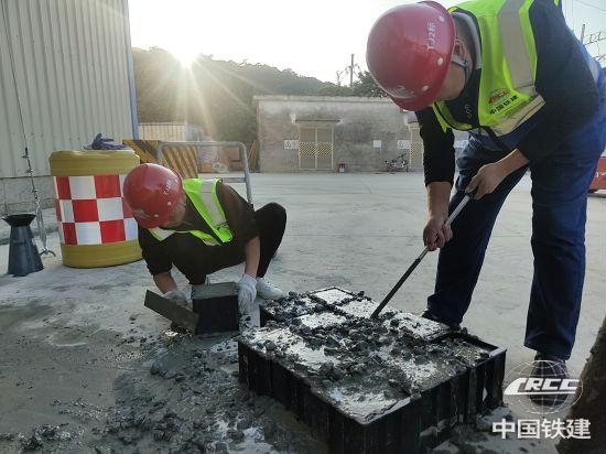 拌和站人員制作混凝土試塊(郭忠法 攝)